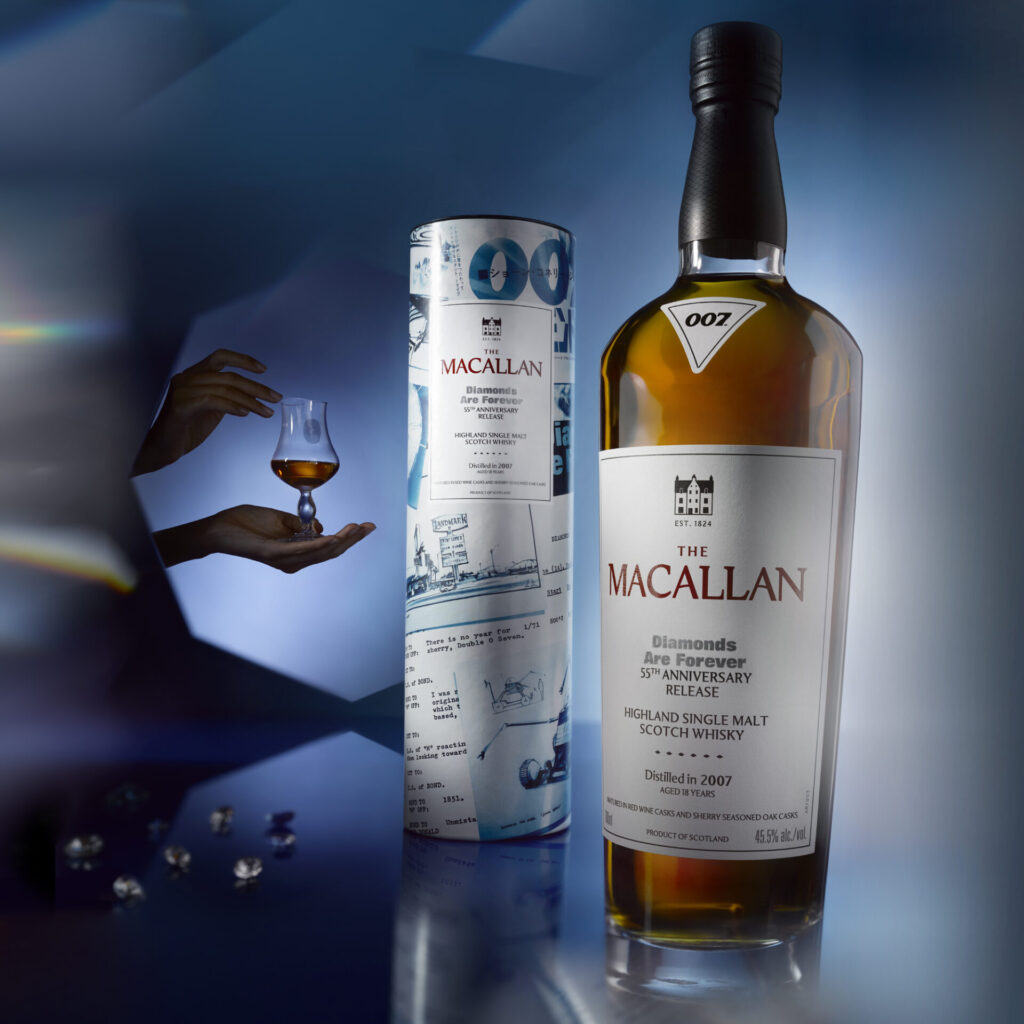 Created by The Macallan’s Whisky Maker, Russell Greig, who is an avid Bond fan, The Macallan Diamonds Are Forever 55th Anniversary Release celebrates the continued ties between The Macallan and James Bond, following The Six Decades of Bond Collection in 2022.